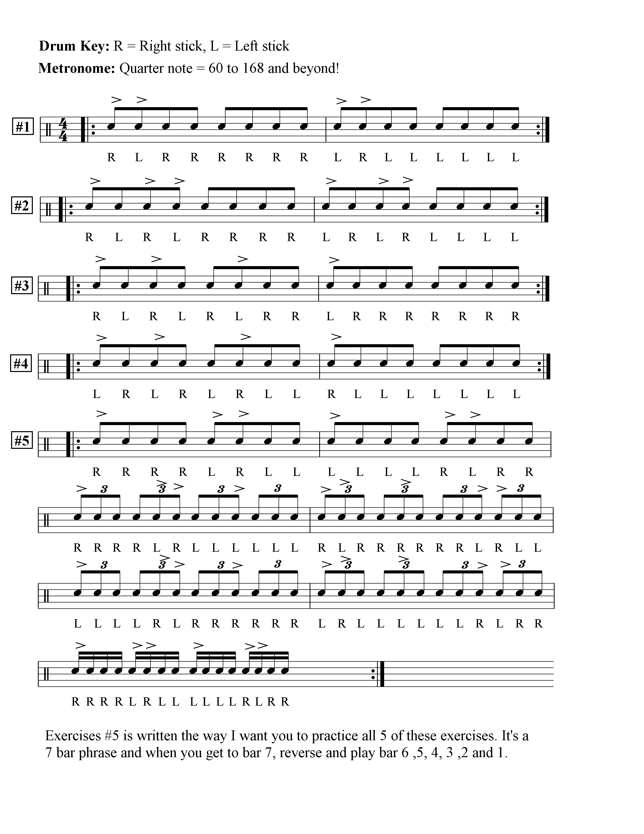 I've always enjoyed creating variations on books Like Stone's Stick Control and Morello's Master Studies. Here I'm putting my spin on the first page of exercises from Joe Morello's book Master Studies.